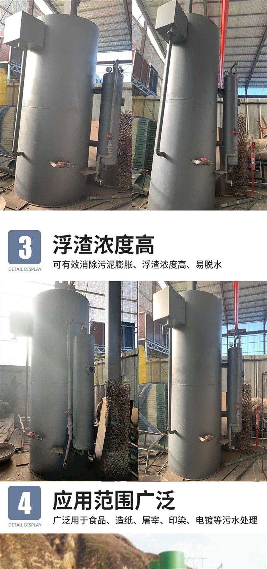 此外,我公司還生產(chǎn)平流式溶氣氣浮機(jī)、污泥壓濾機(jī)、刮吸泥機(jī)、造紙?jiān)O(shè)備等其他環(huán)保設(shè)備。