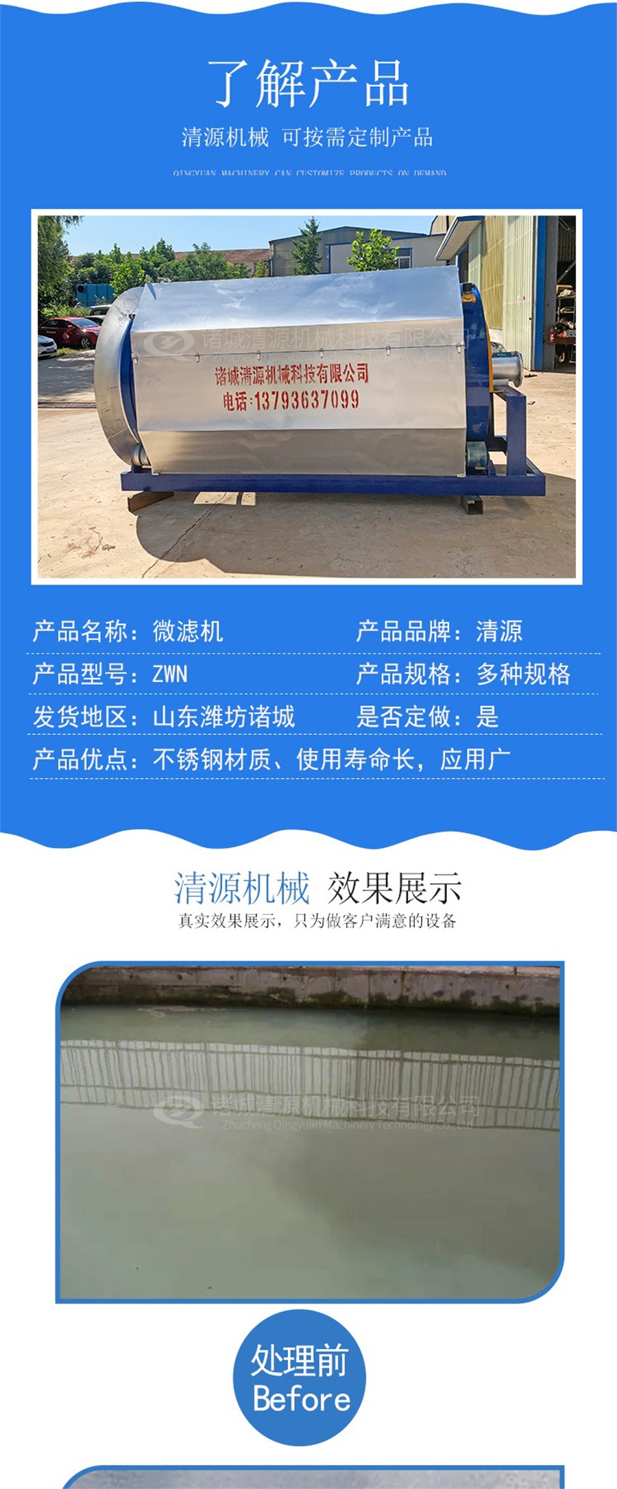 此外,我公司不僅生產(chǎn)微濾機,還生產(chǎn)農(nóng)村污水處理設備、氣浮機、固液分離設備、污泥壓濾機、造紙設備等其他環(huán)保設備。